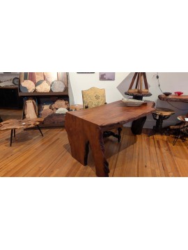 Expertly crafted waterfall edge. redwood root base. Live edge slab curly redwood.