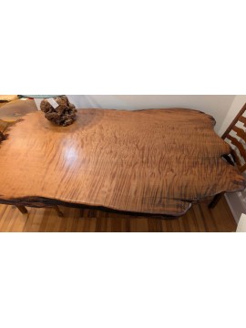Exceptional Live Edge Claro Walnut Burl Dining table. Over 5 feet in diameter!